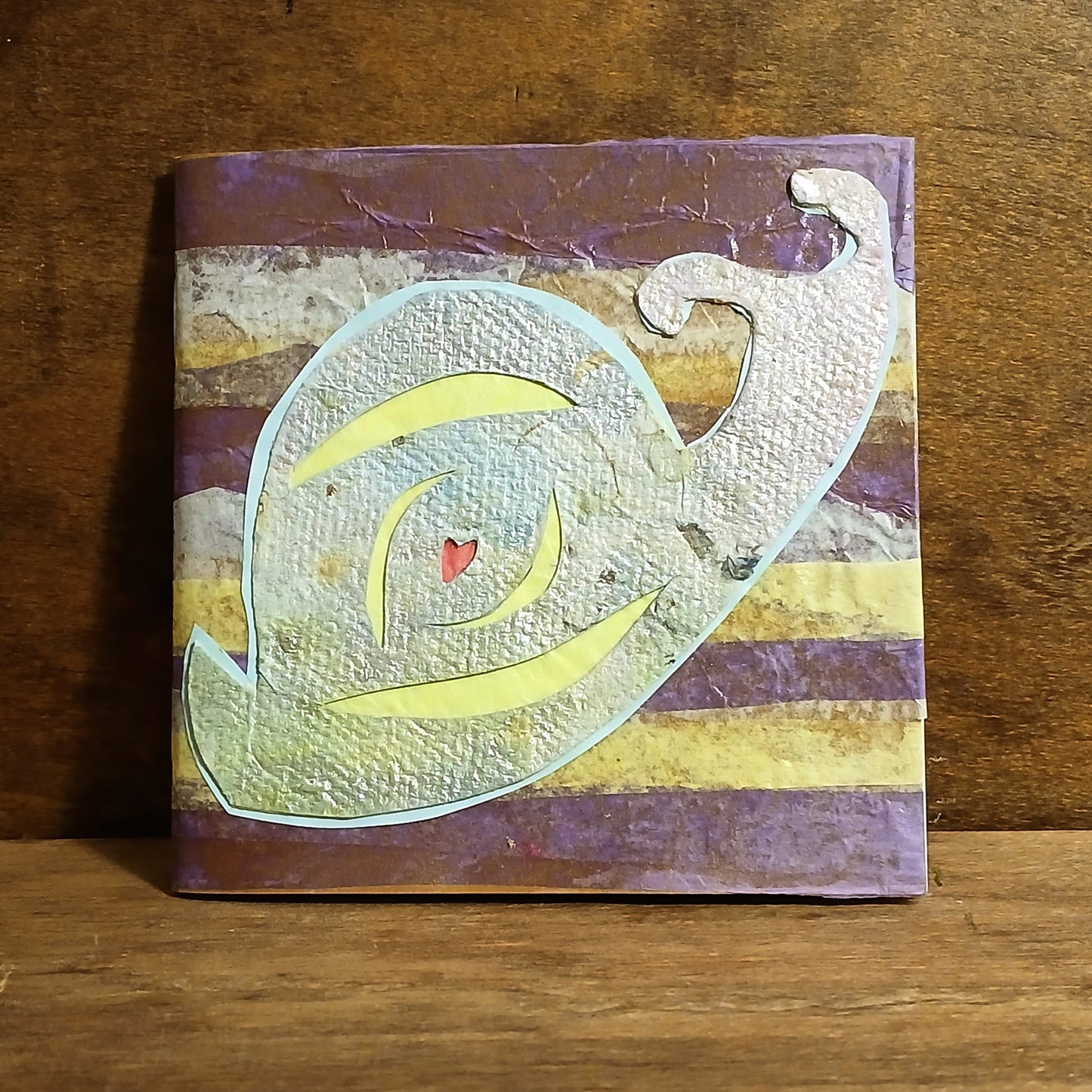 Perfect size to keep on your bedside table or in your bag so you can jot down lists, daydreams and doodles. Recycled, handmade paper decorates the cover with a one of a kind hand painted & cut snail adorns the front. This blank book is sure to uplift your spirits and bring a smile to your face.